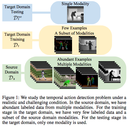 行動検出タスク向けに、特権情報を使った知識の蒸留を利用しています。推論時に受け取る入力データはRGB映像のみのモデルでも、知識の蒸留の枠組みを利用して、人のポーズやオプティカルフローといった入力をうまく学習に活かしています。