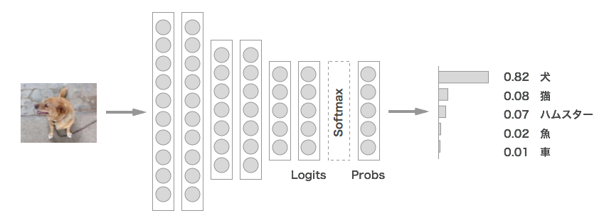 最初に、学習データから得られる情報と、学習済みの教師モデルから得られる情報の違いについて考えてみます。画像分類タスクを例にすると、学習データは入力となる画像と正解クラス(図では「犬」)のペアになります。犬が正解ということはわかりますが、それ以外のクラスはどれも等しく「正解ではない」という情報しかありません。